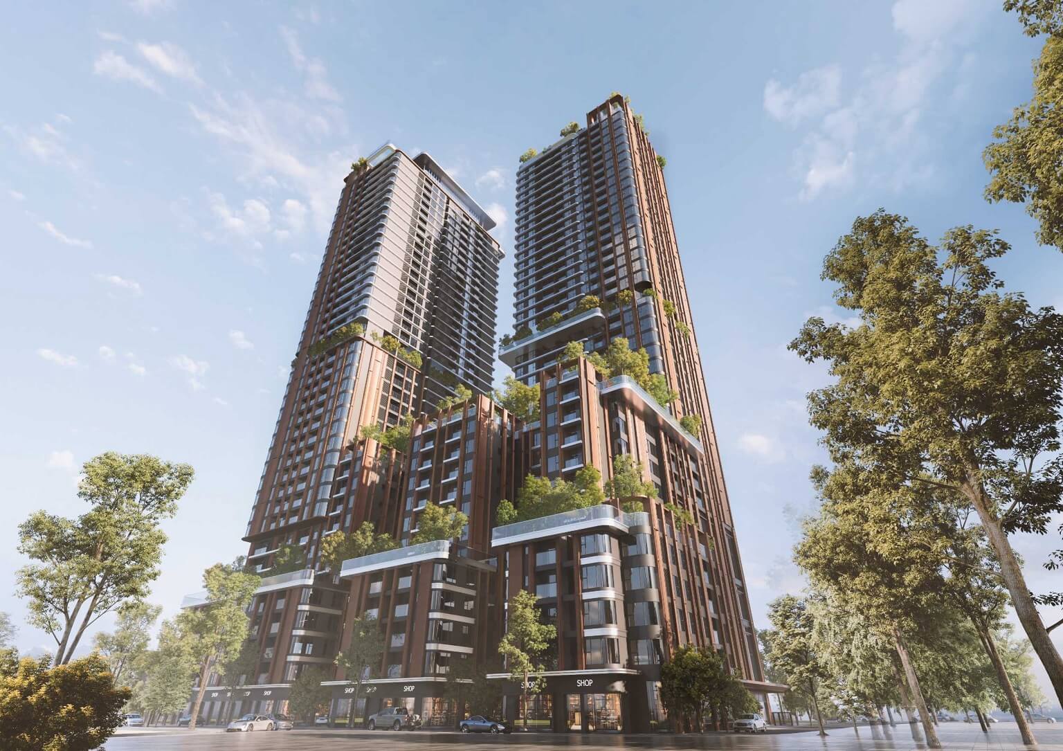 | Tầng 2-3 | Thương mại dịch vụ văn phòng và để xe | TTTM F&B cao cấp, Siêu thị, Nhà trẻ, Thư viện, Co-working, Phòng hội nghị. |